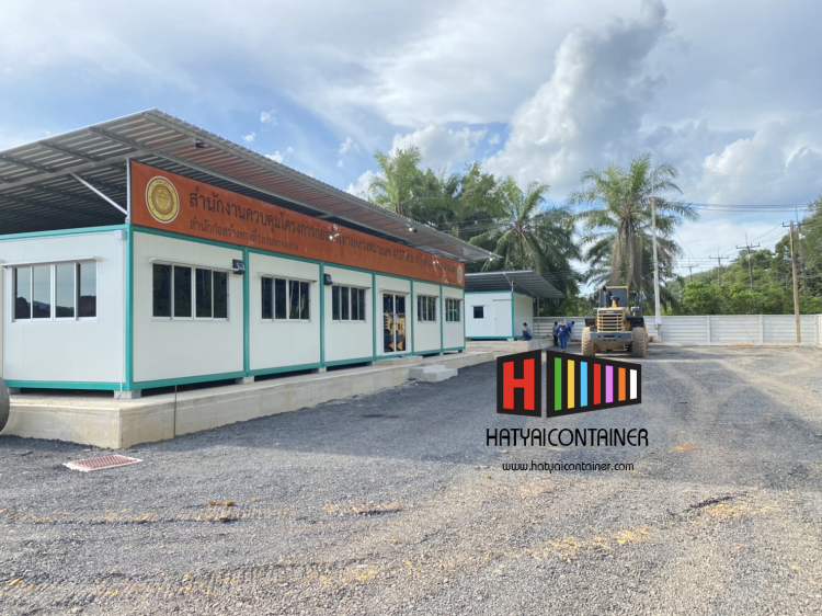 ตู้คอนเทนเนอร์สำนักงาน งานทางหลวง แยกสวนเทศ ต.ควนโดน อ.ควนโดน จ.สตูล ในงานจ้างเหมาทำการก่อสร้างทางหลวงหมายเลข 4137 สาย บ.ทุ่งตำเสา – แยกสวนเทศ กระทรวงคมนาคม
